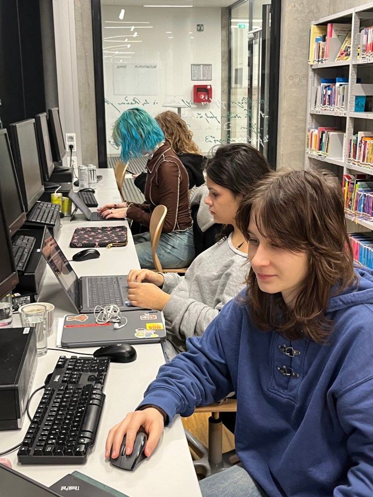 Drei Wochen vor dem Abgabetermin der ABA-Arbeiten trafen sich SchülerInnen der 8. Klassen am Abend in der Schulbibliothek, um gemeinsam zu schreiben, zu diskutieren und an ihren Texten zu feilen.