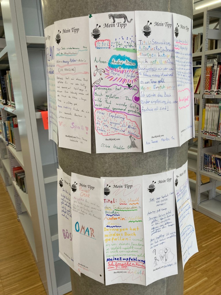 Welche Klasse hat die meisten Bücher gelesen? Über die Weihnachtsferien haben die Schülerinnen und Schüler der ersten Klassen viele Bücher ausgeborgt. Was sie von den Bücher halten, kann man jetzt in der Schulbibliothek nachlesen. Lass dich von ihren Büchertipps inspirieren und borge dir eins der Bücher aus!