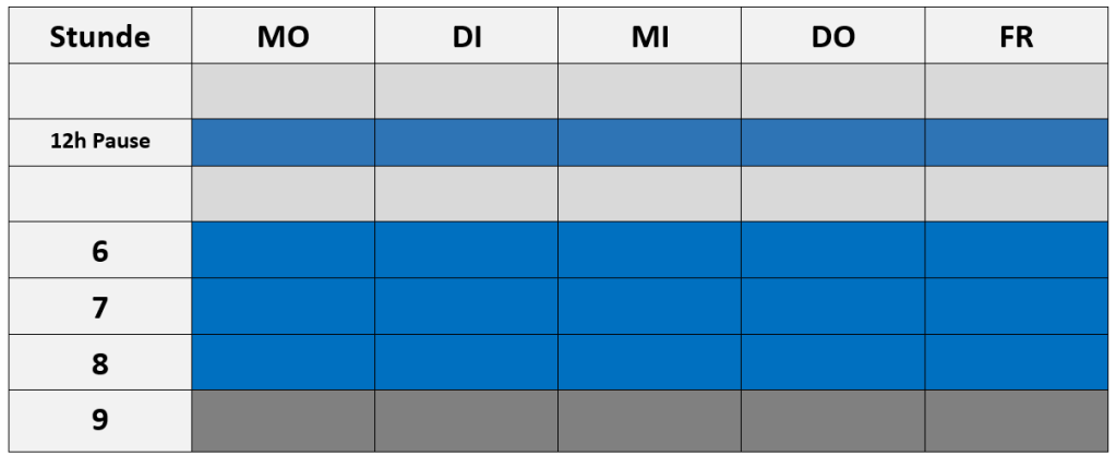 Die BIB ist täglich in einer Pause und von 13h bis 15.30h geöffnet. In diesen Zeiten ist eine Bibliothekarin anwesend. In der 9. Stunde wird die Bibliothek durch Schüler:innen betreut. Entlehnung und Rückgabe ist in dieser Zeit möglich.